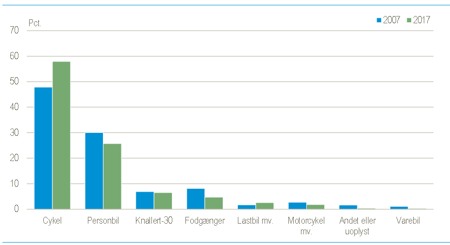 Derudover har vi vores eget cykelmærke van de falk der er dansk design og bliver produceret i tyskland. Københavns kommune har en strategi om at gøre københavn til verdens bedste cykelby. I cykelstrategien flere cykler på sikker vej i staten fra 2007 har det daværende transport og energiministerium samlet tal om cykeltrafikkens udvikling i danmark siden 1990. årsagen til det høje antal dræbte ældre cyklister er blandt andet nedsat reaktionstid samt en øget skrøbelighed som gør skaderne værre hvis der sker en ulykke.
